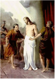 "... Pilatos tornou a sair para ir ter com os judeus e disse-lhes: 'Não encontro nele crime algum. Mas é costume entre vós que pela Páscoa vos solte um preso. Quereis, pois, que eu vos solte o rei dos Judeus?' Então todos gritaram novamente e disseram: 'Não! A este não! Mas a Barrabás!' Ora, Barrabás era um ladrão. Então Pilatos depois de mandar açoitar a Jesus, O entregou a multidão...'' (Jo 18, 38-40).